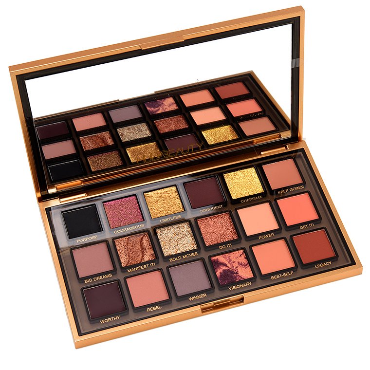 Huda Beauty Empowered Eyeshadow Palette is the brand’s newest 18-pan palette that included two cream-based shades with the rest as powders. The shimmers were a bit thicker and moderately emollient, and I liked them on their own but didn’t feel like they always combined as well with the matte formula, which was thinner and lightly to moderately powdery. I think Huda’s matte eyeshadow formula works well for someone who prefers more buildable coverage and always uses an eyeshadow primer for their looks.